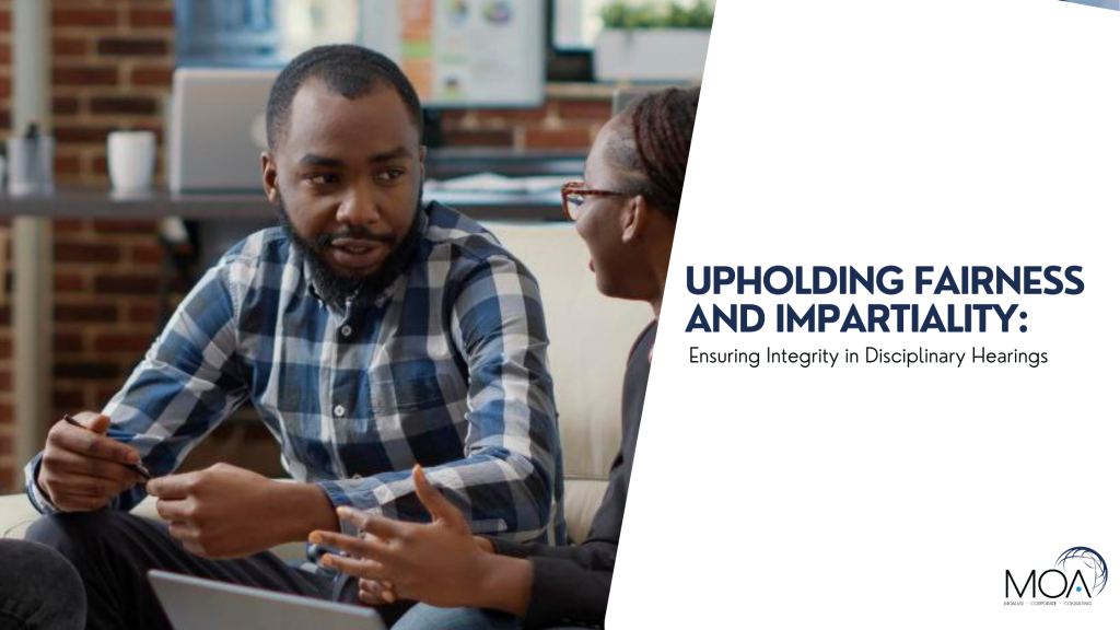 In the realm of human resources, disciplinary hearings are pivotal moments where fairness, integrity, and impartiality must reign supreme. These proceedings are not just about addressing workplace misconduct but also about upholding the principles of justice and due process. In this blog post, we\’ll explore the importance of maintaining a fair and impartial process in disciplinary hearings and offer guidance on how HR professionals can ensure integrity every step of the way. Why Fairness and Impartiality Matter: Disciplinary hearings represent a critical juncture in the employment relationship, where allegations of misconduct are investigated, and decisions are made that can have significant implications for both employees and organizations. A fair and impartial process is essential for several reasons: Key Principles for Upholding Fairness and Impartiality: Best Practices for Conducting Fair and Impartial Disciplinary Hearings: Conclusion: Upholding fairness and impartiality in disciplinary hearings is not just a legal requirement but also a moral imperative. By adhering to principles of transparency, neutrality, due process, and evidence-based decision-making, HR professionals can ensure that disciplinary proceedings are conducted with integrity and respect for the rights of all parties involved. Ultimately, a fair and impartial process strengthens trust, fosters accountability, and promotes a culture of fairness and justice in the workplace.